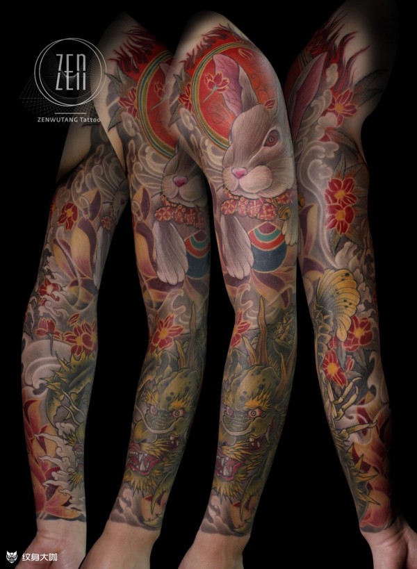 女生猫咪兔子个性手臂纹身_手臂纹身图案大全_纹身图吧
