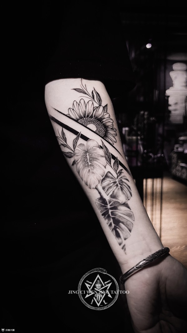 25款男性黑色手臂线条纹身点刺技巧半甲纹身图案