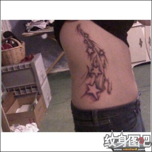 分享一款腰部时尚性感的蝶恋花纹身图案_腰部纹身图案大全_纹身图吧