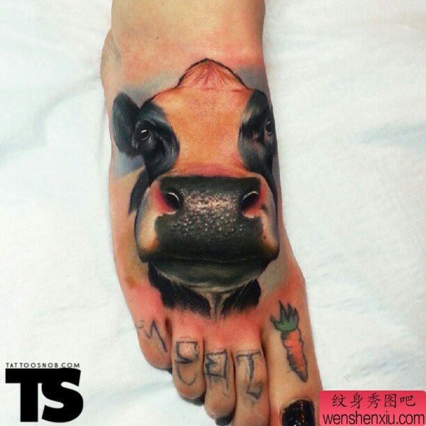 一张脚背上奶牛纹身图案