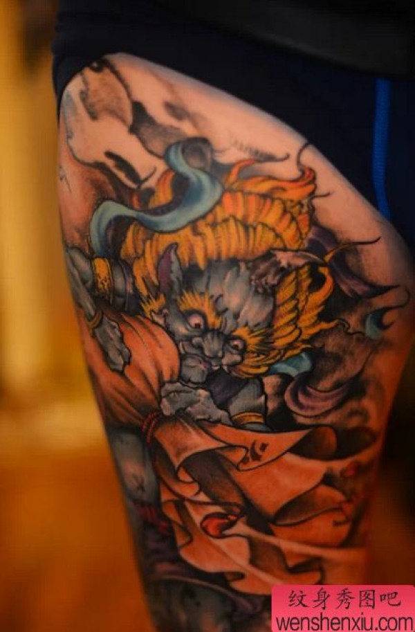 纹身图吧分享一张腿部彩色不动冥王纹身图案