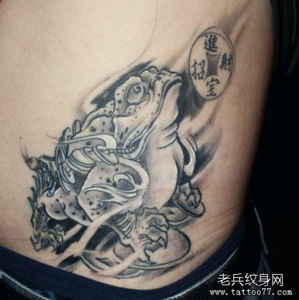 纹身图吧分享一张腰部招财蟾蜍纹身图案