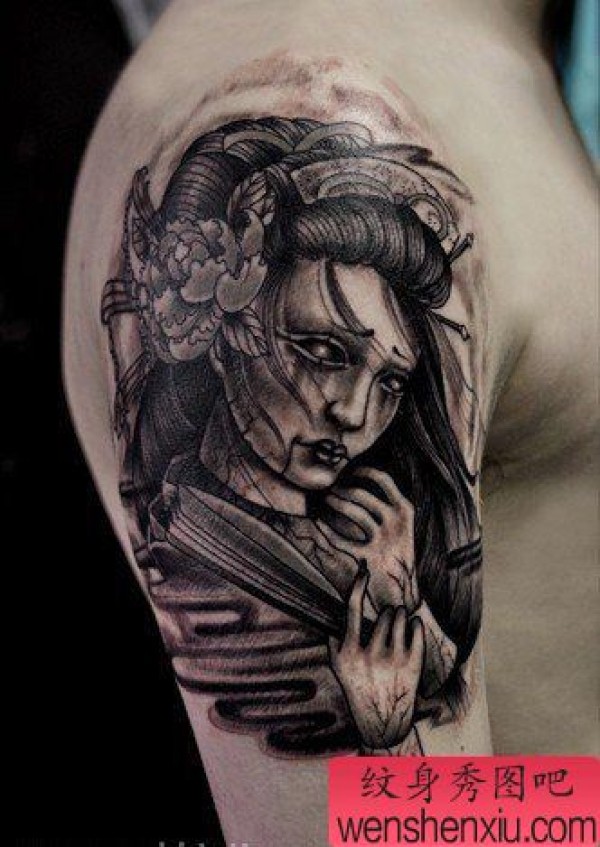 能面万媚纹身手稿_52张日式能剧面具纹身手稿图案素材欣赏