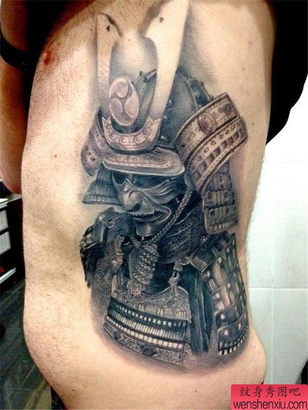 纹身图吧分享一张侧腰腹部骑士纹身图案