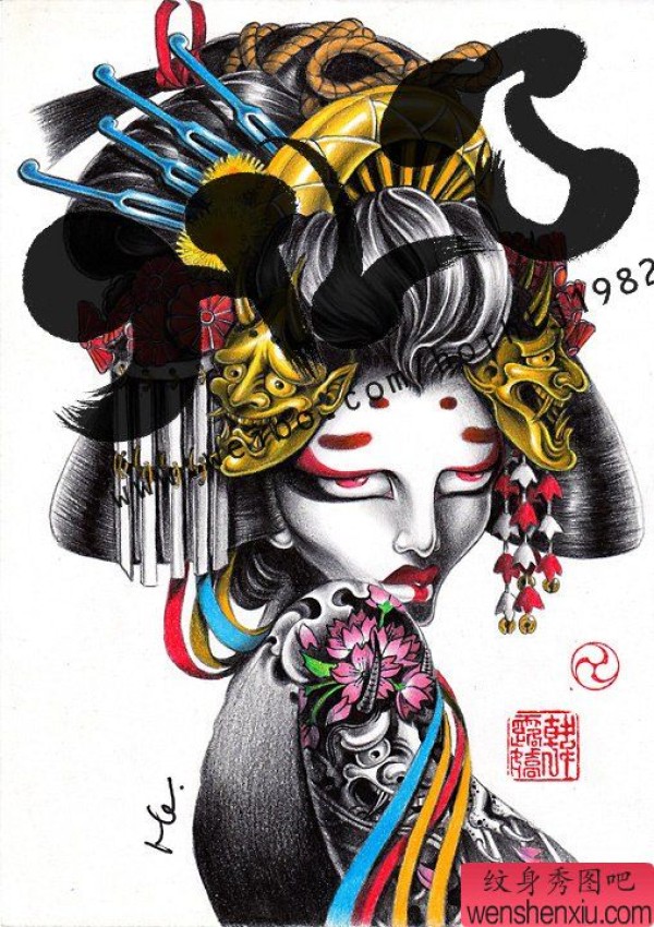 纹身图吧分享一张艺妓纹身图案