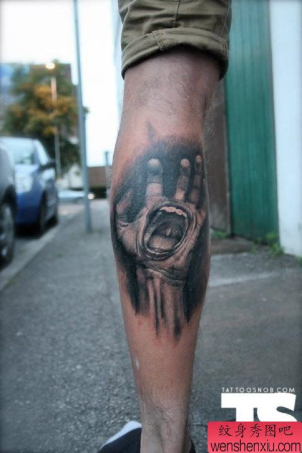 花腿纹身--一组大黑腿纹身图案作品欣赏