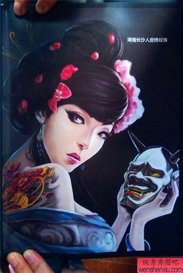 能面万媚纹身手稿_52张日式能剧面具纹身手稿图案素材欣赏