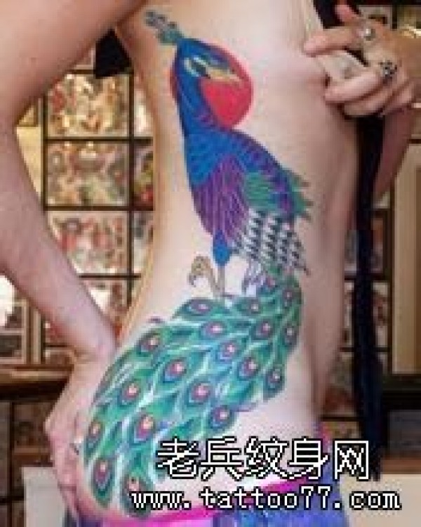 分享一款腰部时尚性感的蝶恋花纹身图案_腰部纹身图案大全_纹身图吧