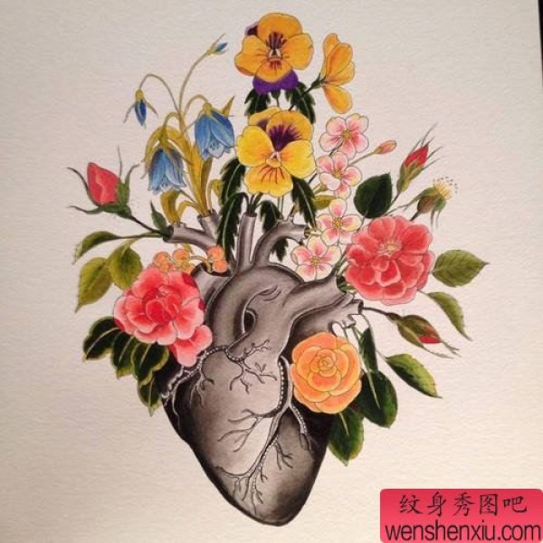 纹身图吧分享一张心脏文身作品