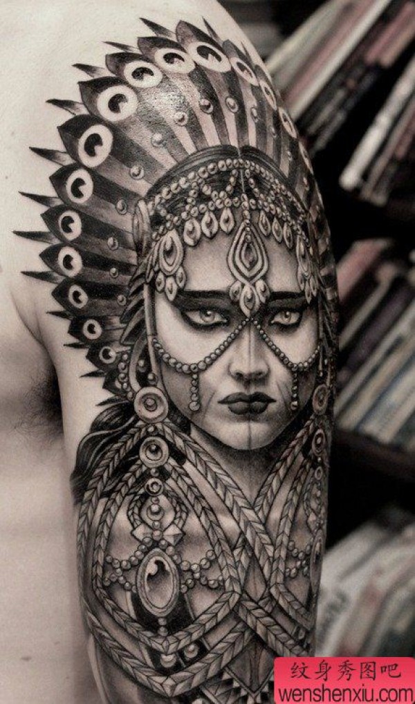 胳膊印第安人物文身作品