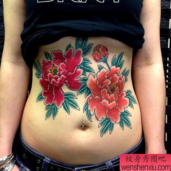 女性腰部莲花花纹刺青_腰部纹身图案大全_纹身图吧