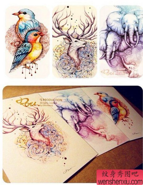 一组18张漂亮的欧美newschool动物纹身手稿图案