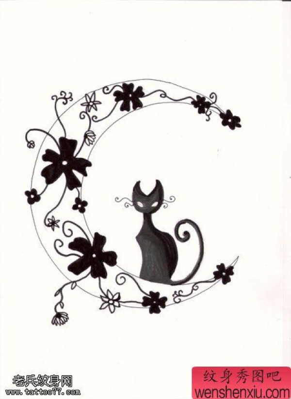 图腾猫咪月亮文身作品由最好的文身馆分享