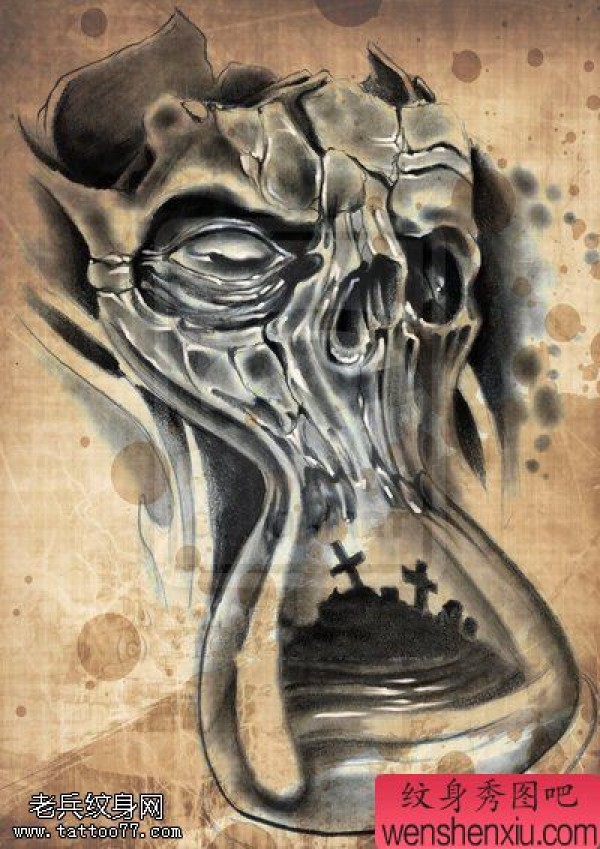 纹身图吧分享一张骷髅沙漏文身手稿作品