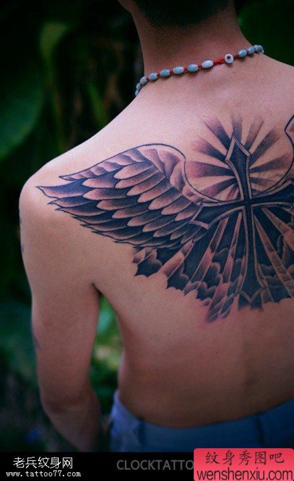 背部十字架翅膀文身图片纹身图吧分享