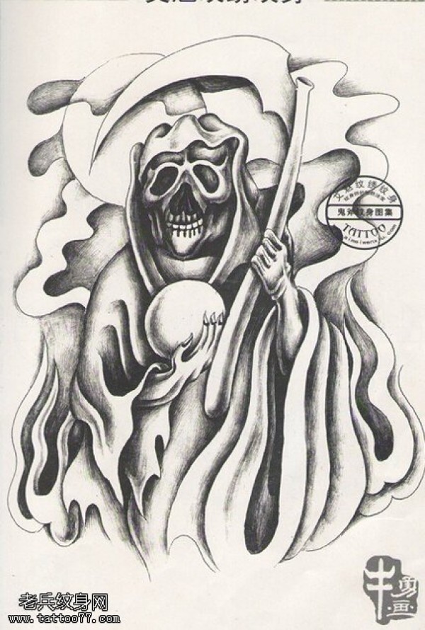 黑白死神文身手稿作品由做好的文身馆分享