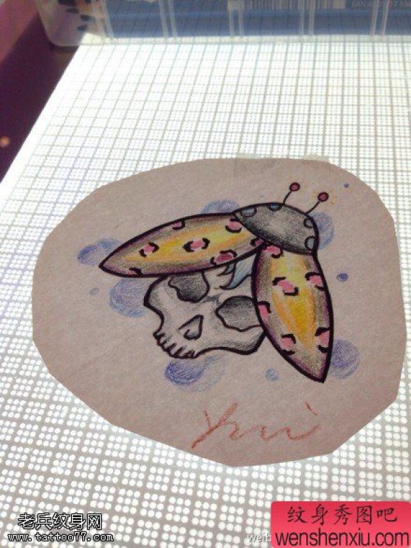 瓢虫帽子的骷髅君文身作品由文身分享