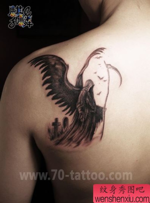 肩甲上的蜘蛛图案纹身_后背纹身图案大全_纹身图吧