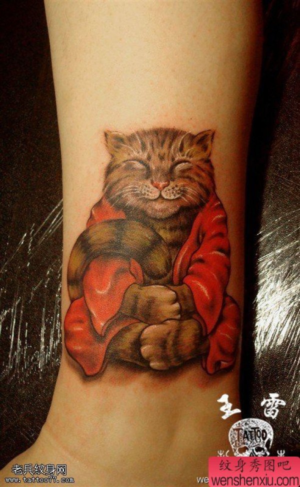 纹身图吧分享一张脚踝彩色猫咪文身作品
