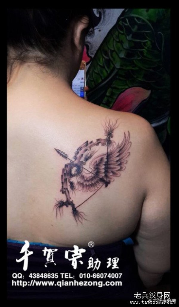 女生肩花纹身_15张女性双肩对称的肩花纹身图案作品图片