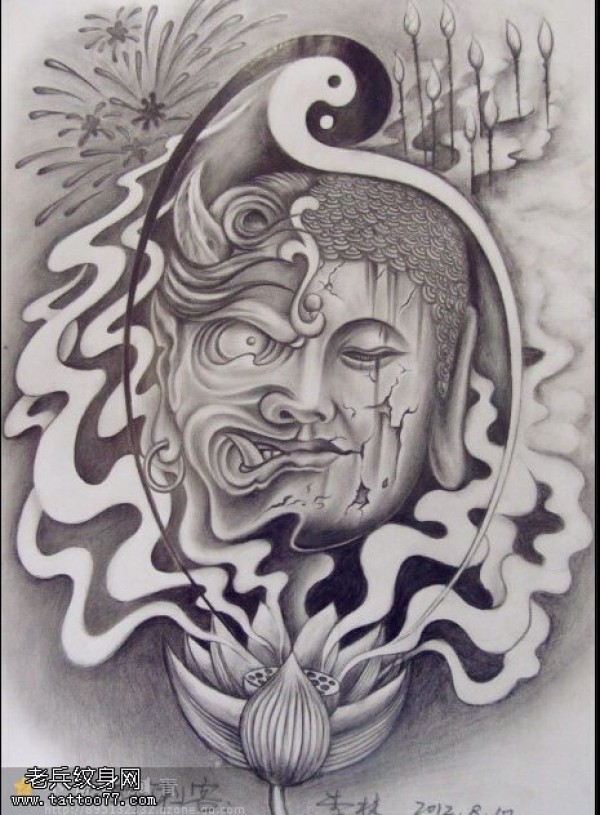 纹身图吧分享一张神魔文身手稿作品