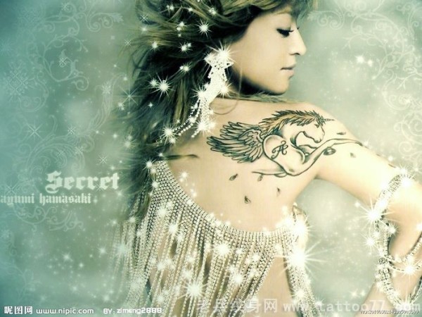 日本女星滨崎步肩部独角兽纹身图案欣赏