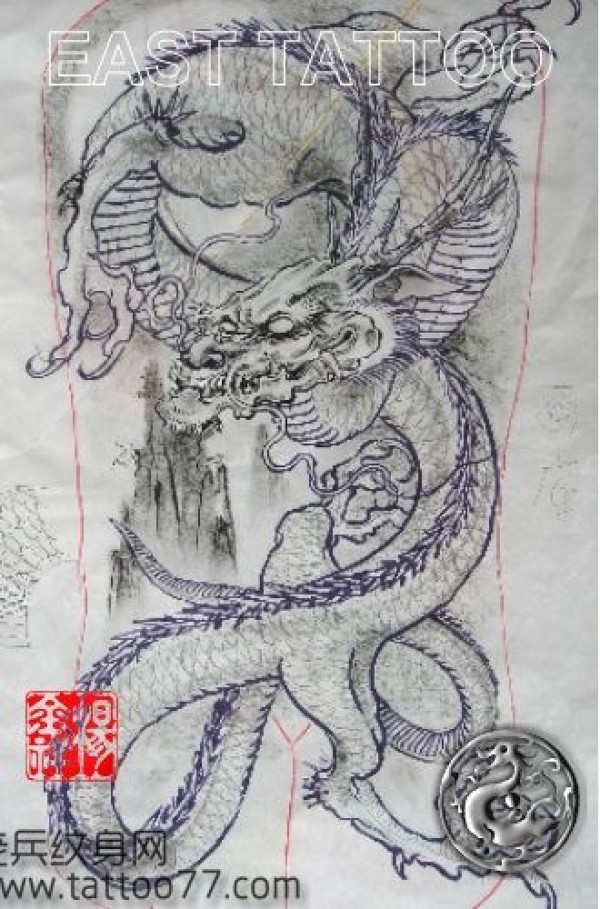 帅气的满背龙纹身手稿