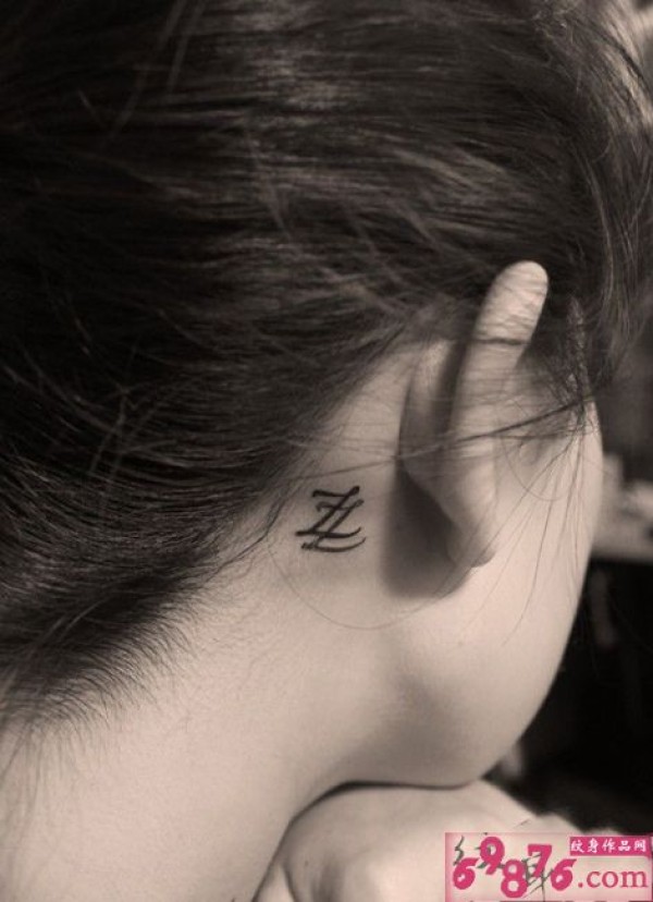多款女生耳后黑色线条素描文艺小清新小图案纹身图案