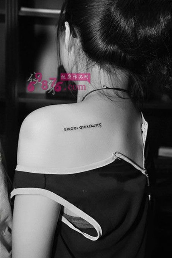 清新黑白英文肩部纹身