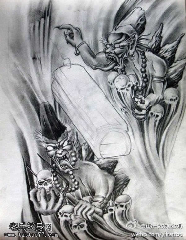 黑白无常纹身线稿图案