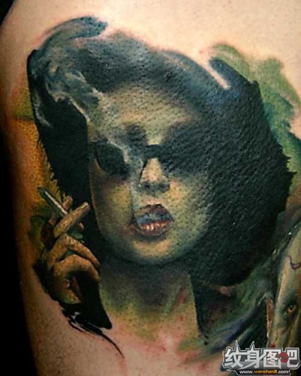 女性肩部肖像刺青_肖像纹身图案大全_纹身图吧