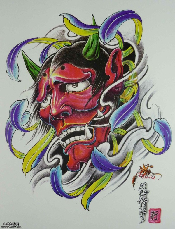 能面万媚纹身手稿_52张日式能剧面具纹身手稿图案素材欣赏