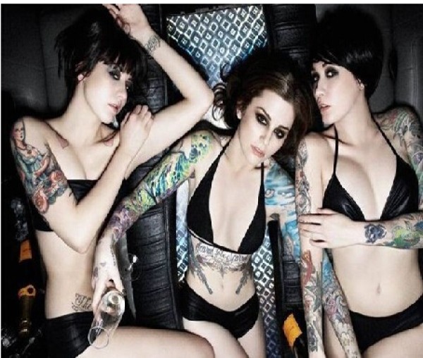 比基尼性感漂亮妹妹个性时尚花臂纹身图片
