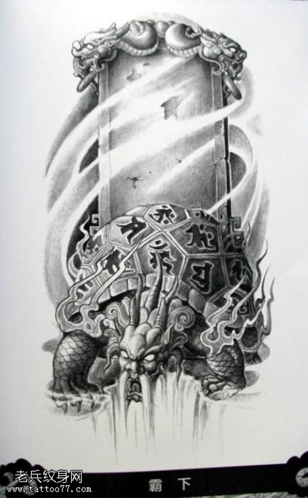 龙纹身手稿_一组老传统黑灰龙手稿纹身图案