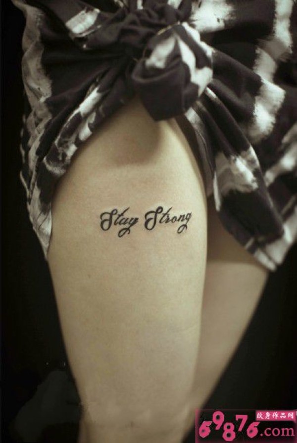 简洁英文字母大腿纹身图片