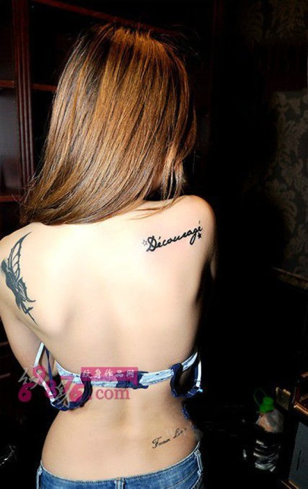 美女香肩小清新英文纹身图片
