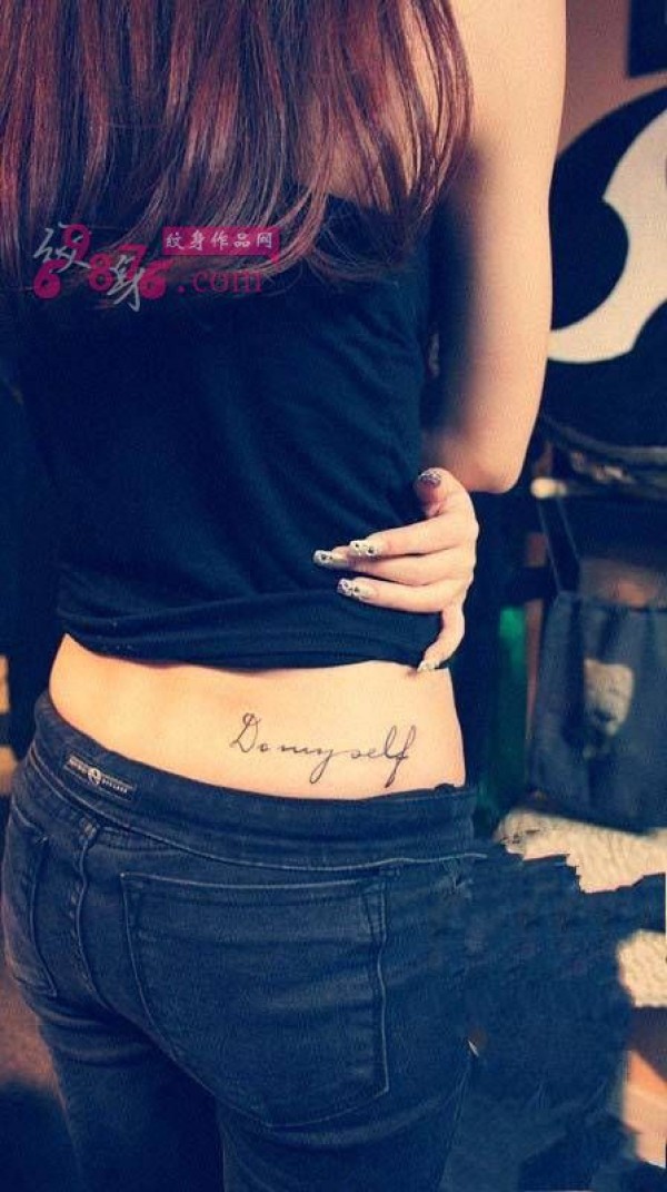 美女腰侧小清新英文纹身图片