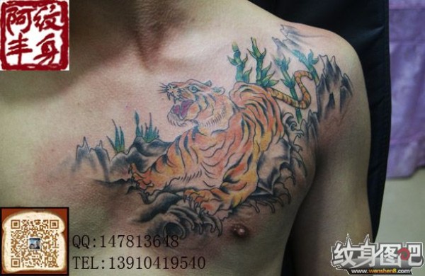 霸气半胛老虎纹身_动物纹身图案大全_纹身图吧