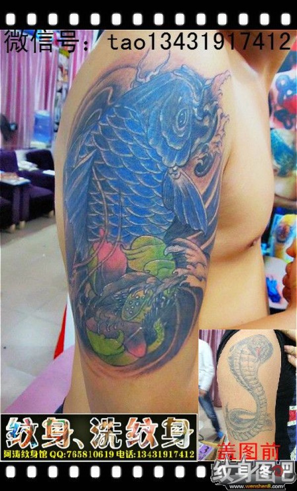 手臂莲花蛇纹身图案_臂部纹身图案大全_纹身图吧