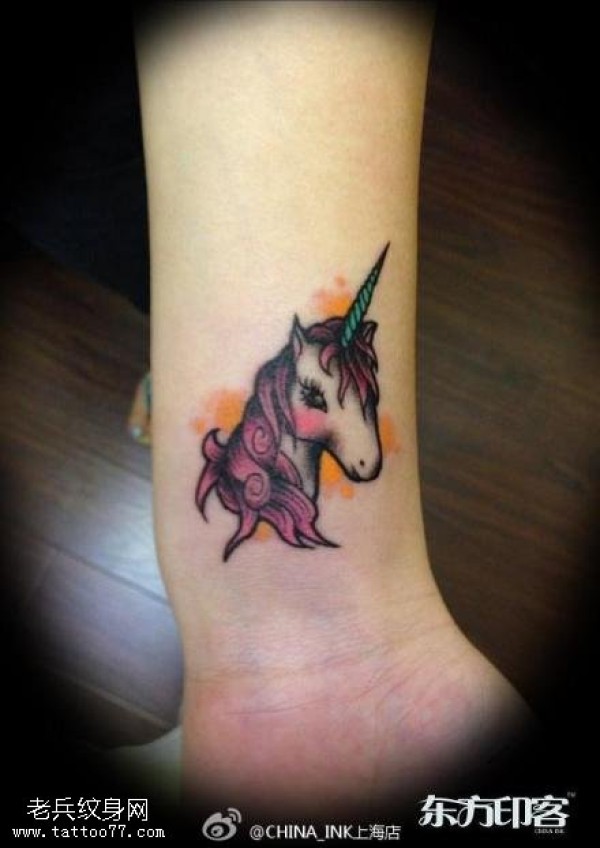手腕彩色独角兽纹身图案