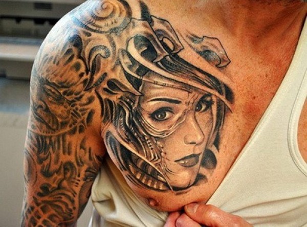 欧美花臂纹身_22张霸气黑灰欧美大黑花臂纹身图案作品图片