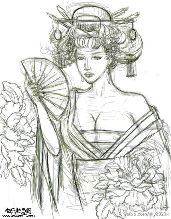 素描人物艺妓纹身手稿图案