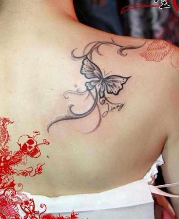 女生肩花纹身_15张女性双肩对称的肩花纹身图案作品图片