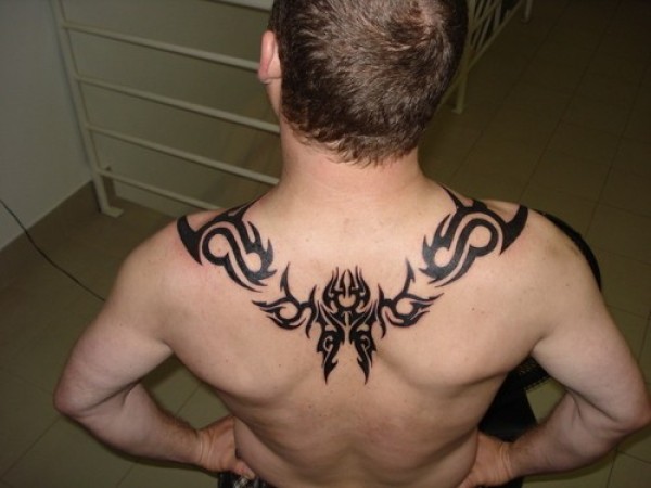 男性背部帅气的部落图腾纹身图案