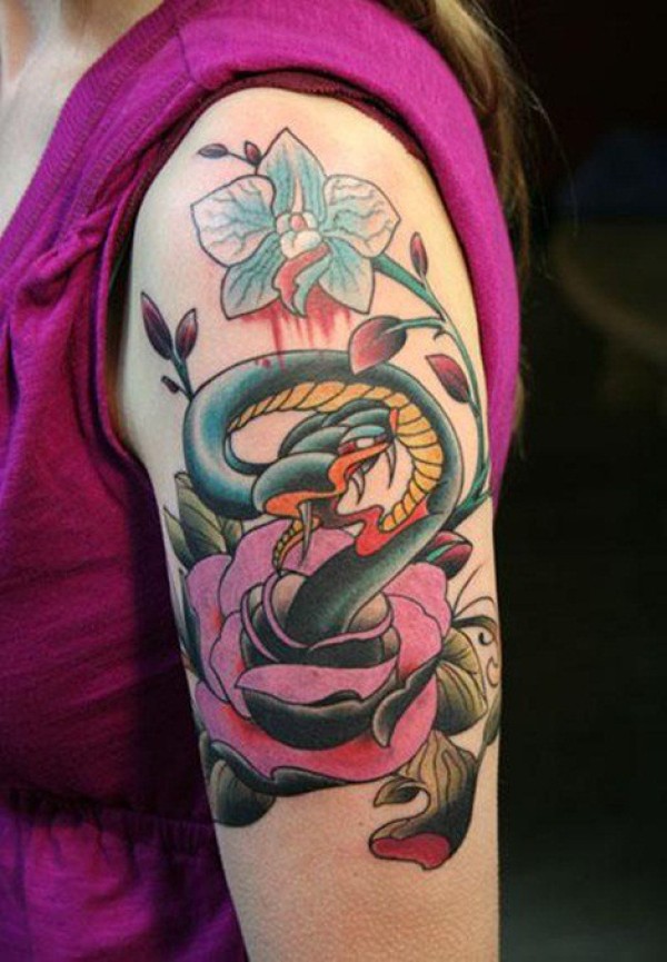 手臂莲花蛇纹身图案_臂部纹身图案大全_纹身图吧
