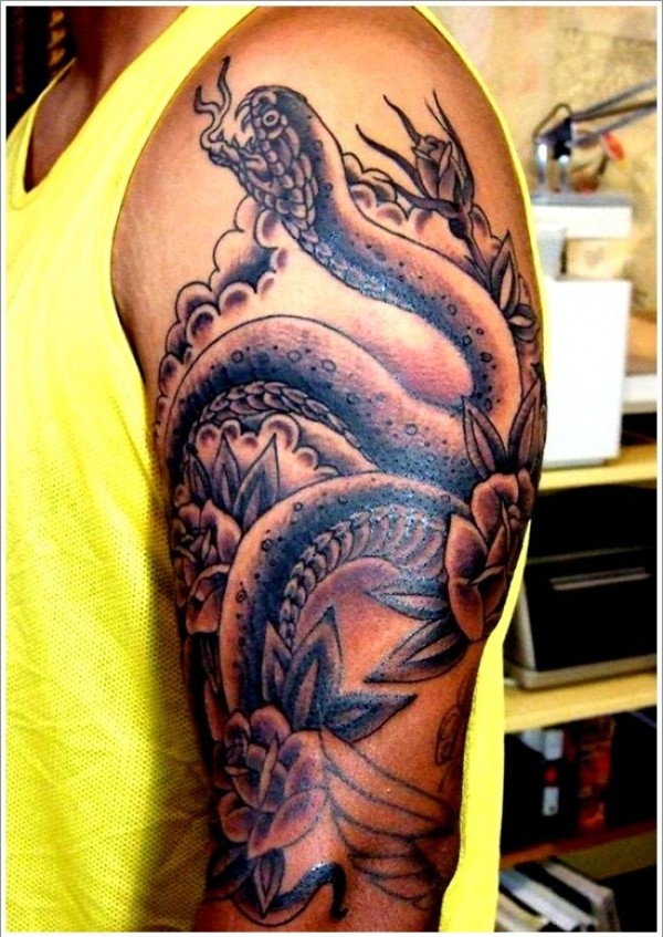手臂莲花蛇纹身图案_臂部纹身图案大全_纹身图吧