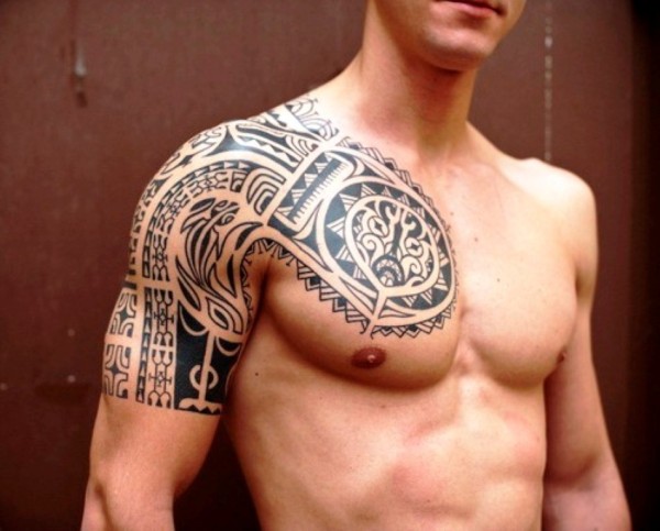时尚阳光的欧美帅哥的图腾半甲纹身