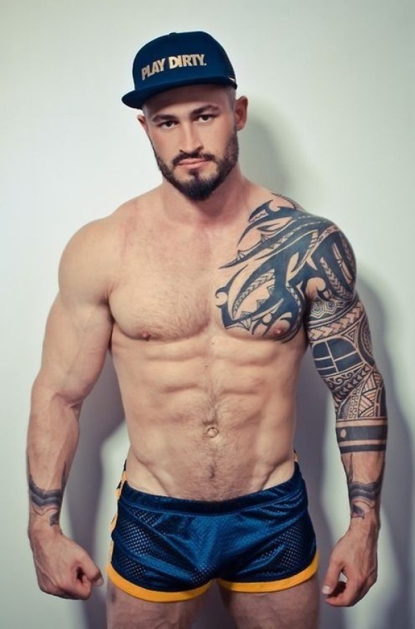 时尚阳光的欧美帅哥的图腾半甲纹身