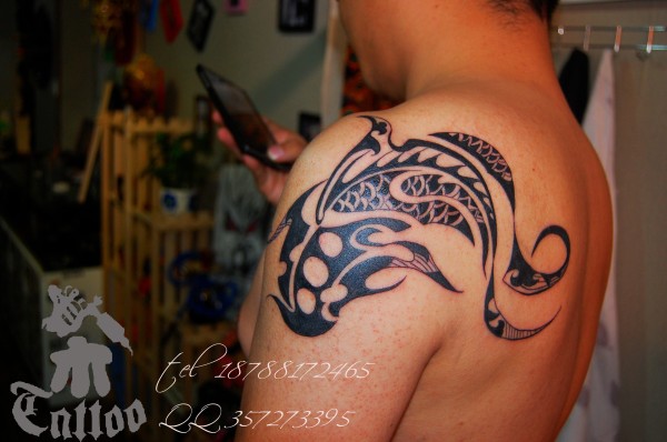肩部大气的图腾鱼纹身