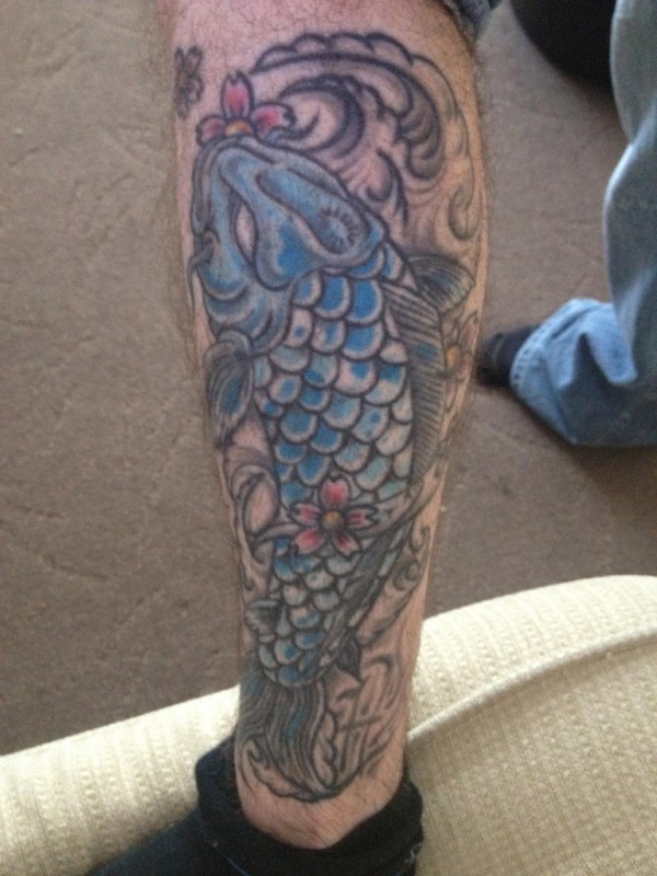 传统鲤鱼花小腿纹身_腿部纹身图案大全_纹身图吧
